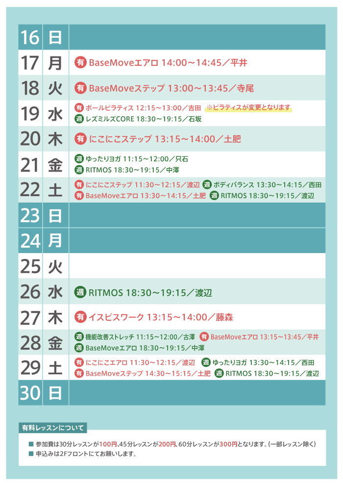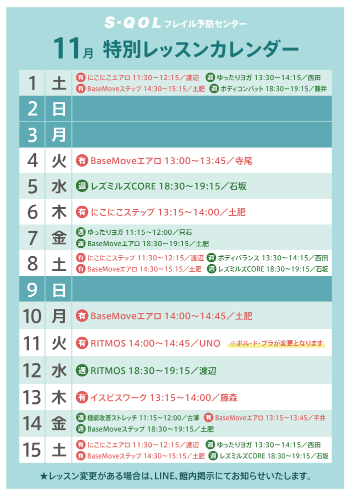 【11月】特別レッスンカレンダー