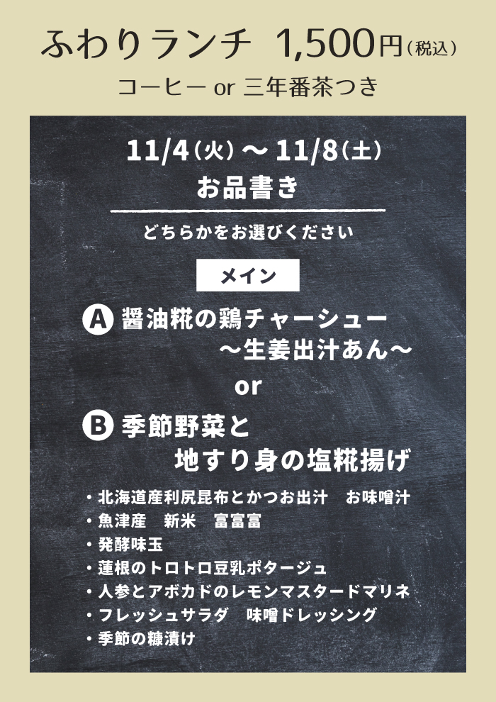【ふわり週替わりランチ】11/4(火)~11/8(土)